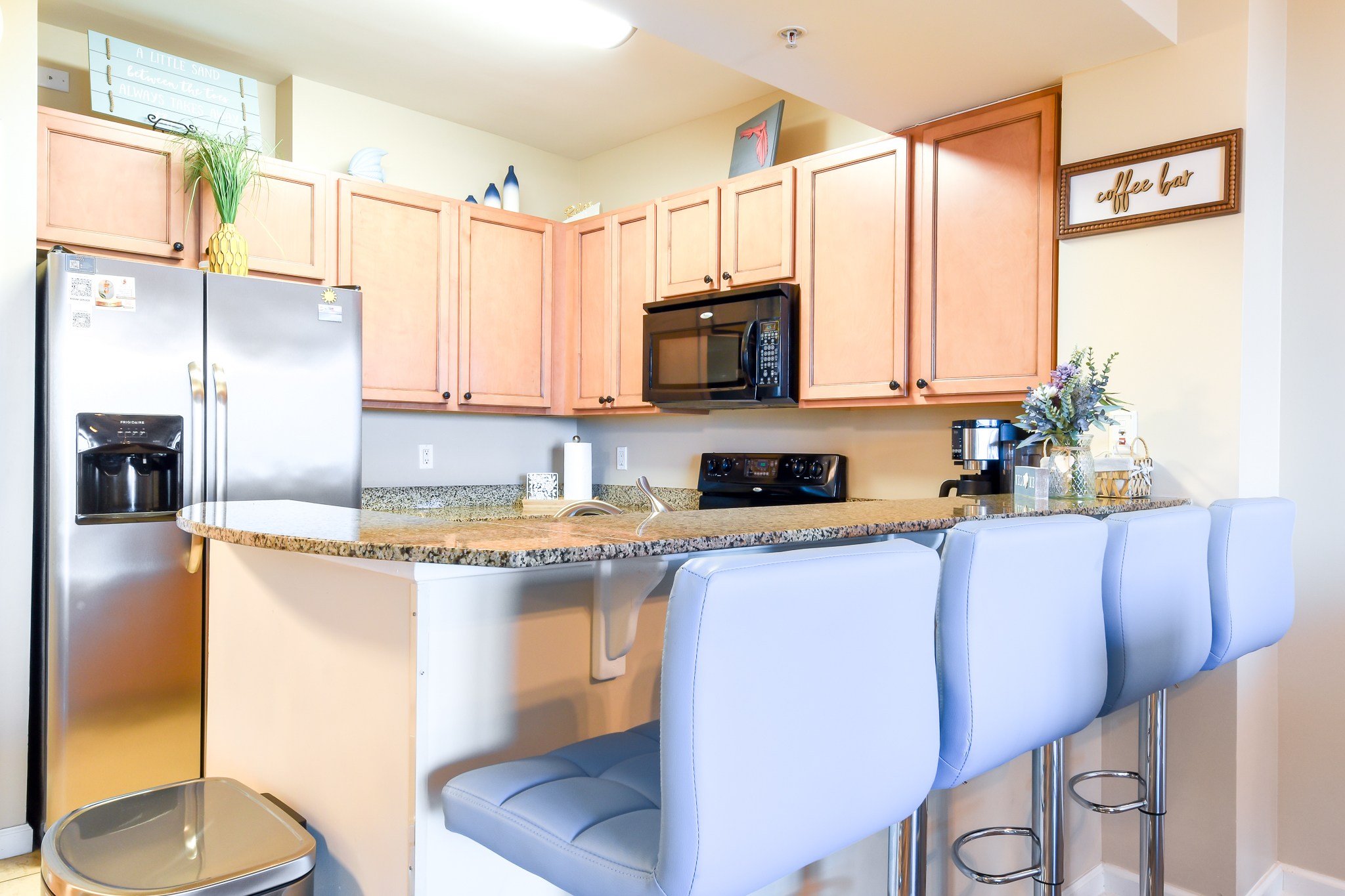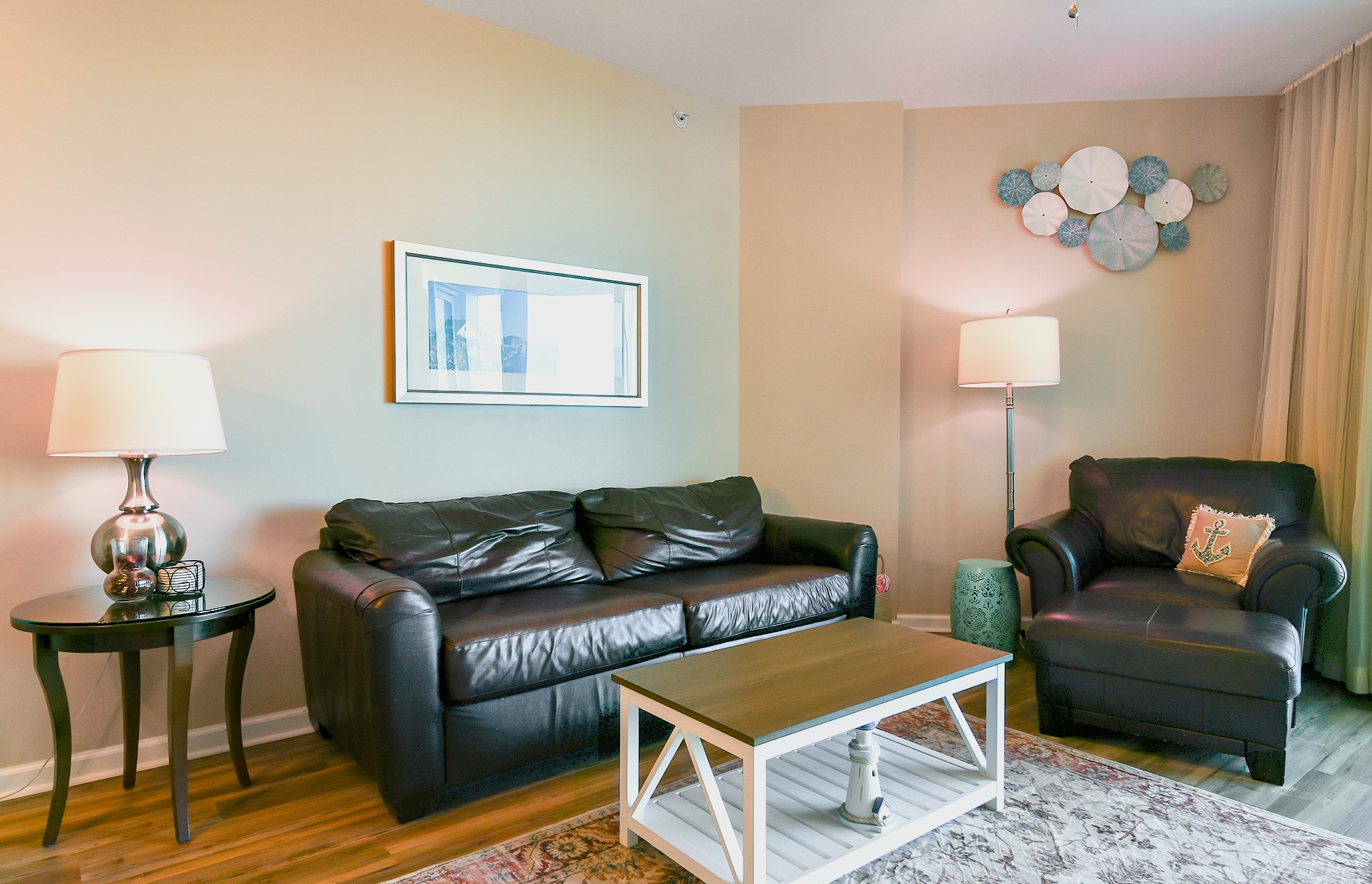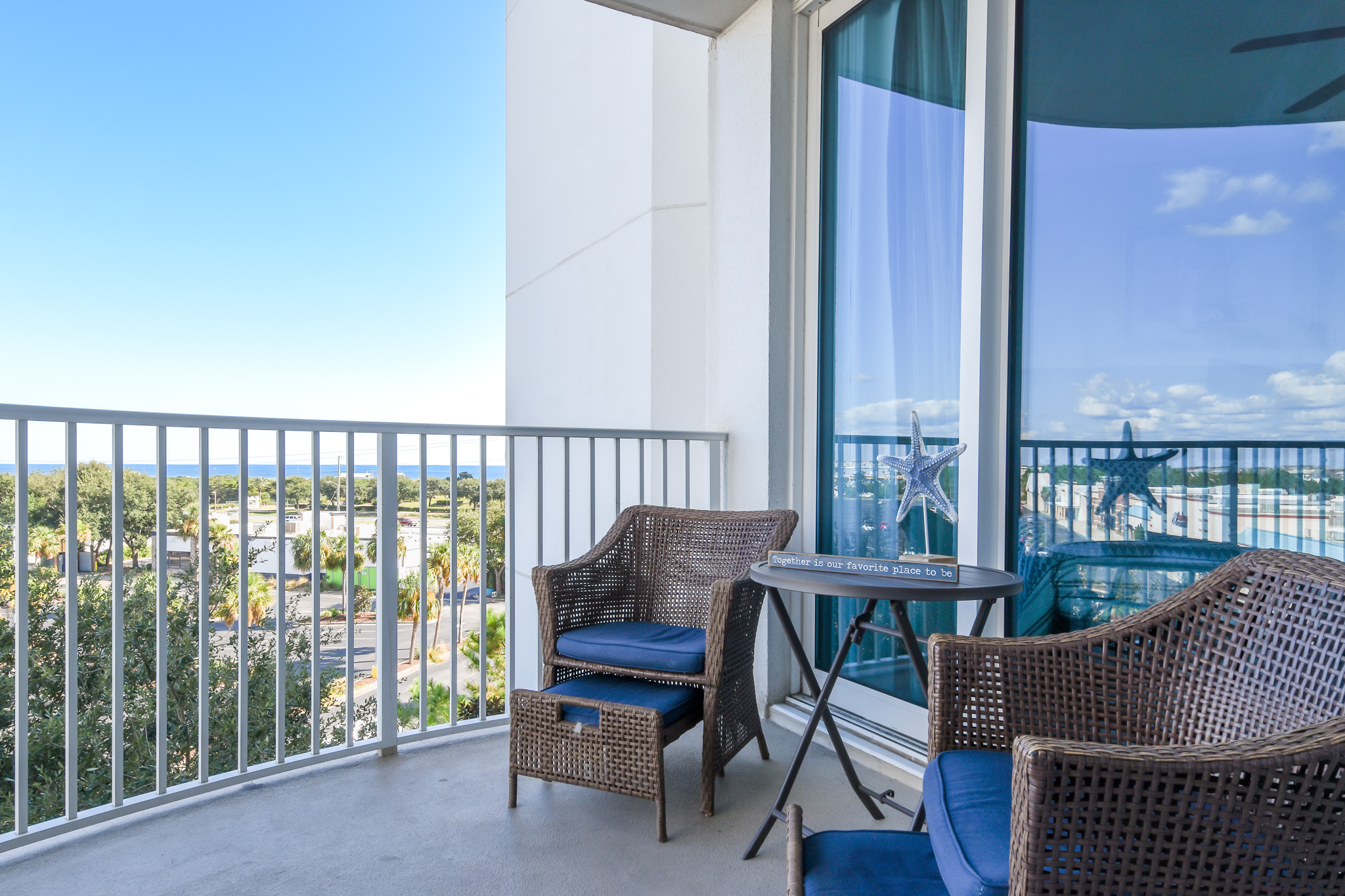 Unwind in Luxury at The Palms of Destin! Imagine yourself on the stunning fifth floor of The Palms of Destin Resort, taking in the breathtaking views of Henderson Beach State Park and the Gulf of Mexico from your private balcony. This luxurious condo offers everything you need for a perfect getaway. Relax in Style The master suite boasts a brand new king-size bed, perfect for a restful night's sleep. Unwind in the soaking tub of the en-suite bathroom after a day of exploration. The guest suite provides a cozy double bed and its own private bathroom, ensuring everyone has a comfortable space. Live Like Home The fully equipped kitchen allows you to whip up delicious meals, while the breakfast bar and dining area offer a perfect space to gather with family and friends. In the evenings, kick back and relax in the living area, featuring a plush leather queen-size sleeper sofa. Endless Amenities Await The Palms of Destin caters to your every need. Take a dip in Destin's largest zero-depth entry lagoon pool, complete with cascading waterfalls, a walking bridge, and spacious lounging areas. There's also a heated pool, a children's splash pad, and a relaxing whirlpool spa for soaking away your worries. The Palms Of Destin's boasts the largest, 11,000 square foot, 259,000 gallon, newly tiled, zero-depth entry Lagoon pool in Destin. The pool area includes five waterfalls, a walking bridge, and spacious lounging areas. There are also a 21,000-gallon heated pool, children's splash pad, and whirlpool spa Stay active in the state-of-the-art fitness center featuring cardio equipment, free weights, and personal entertainment systems. Challenge your friends to a game on the full-size basketball court or the lighted tennis courts. Equipment rentals and professional lessons are available for an unforgettable experience. There is also a on-site restaurant and bar. Grill up some fun! Our fully equipped kitchens are great, but why not enjoy a classic vacation BBQ with a sunset view? The Palms of Destin has community grills by the playground, perfect for an evening cookout. While the adults grill, the kids can burn off energy on the nearby playset. Seasonally, the resort offers a complimentary three-minute air-conditioned beach shuttle to the beach. Access is beside the Back Porch restaurant from 10 am - 10 pm. Additional shuttle runs to the Destin Commons and Harbor Walk Village.